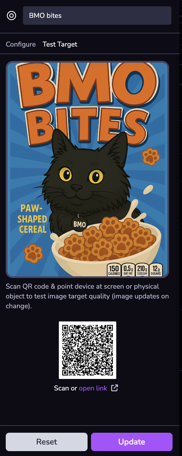Scan the QR code to test the quality and tracking of your uploaded image target.