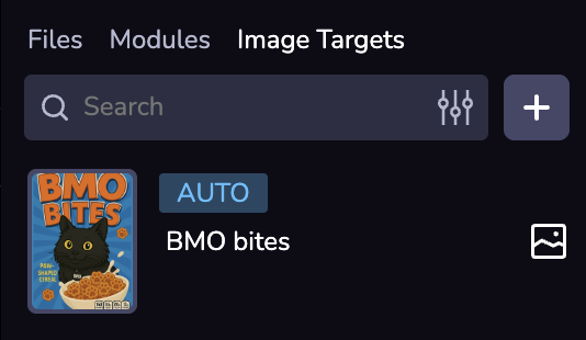 You can add an image target to your scene by creating an Image Target entity.